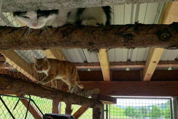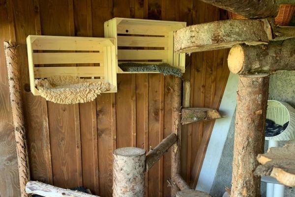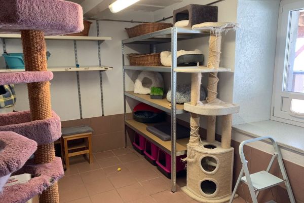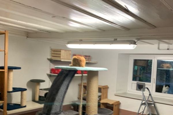 Et dix ans plus tard, le prêt hypothécaire est entièrement remboursé et notre chatterie peut héberger sans problème une cinquantaine de chats dans les 8 pièces entièrement aménagées pour eux. Petit plus pour nos pensionnaires, toutes les pièces sont équipées d’une terrasse fermée.
